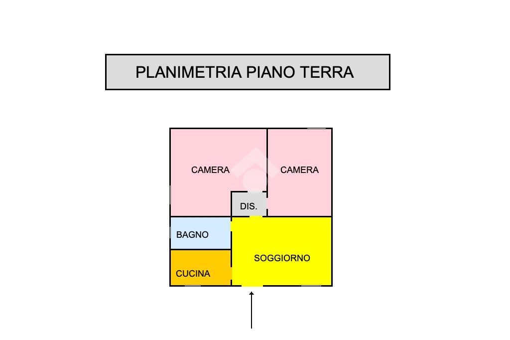 La distribuzione dei vani prevede: ingresso sul soggiorno, cucina, disimpegno notte, bagno finestrato con doccia, camera da letto matrimoniale e cameretta.