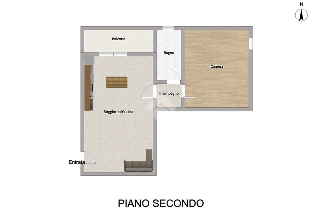 Situato al piano basso di un edificio costruito nel 1999, l'immobile si compone di ingresso su soggiorno con cucina e balcone abitabile (dotato di tenda sole), disimpegno notte, una camera da letto matrimoniale e bagno finestrato.