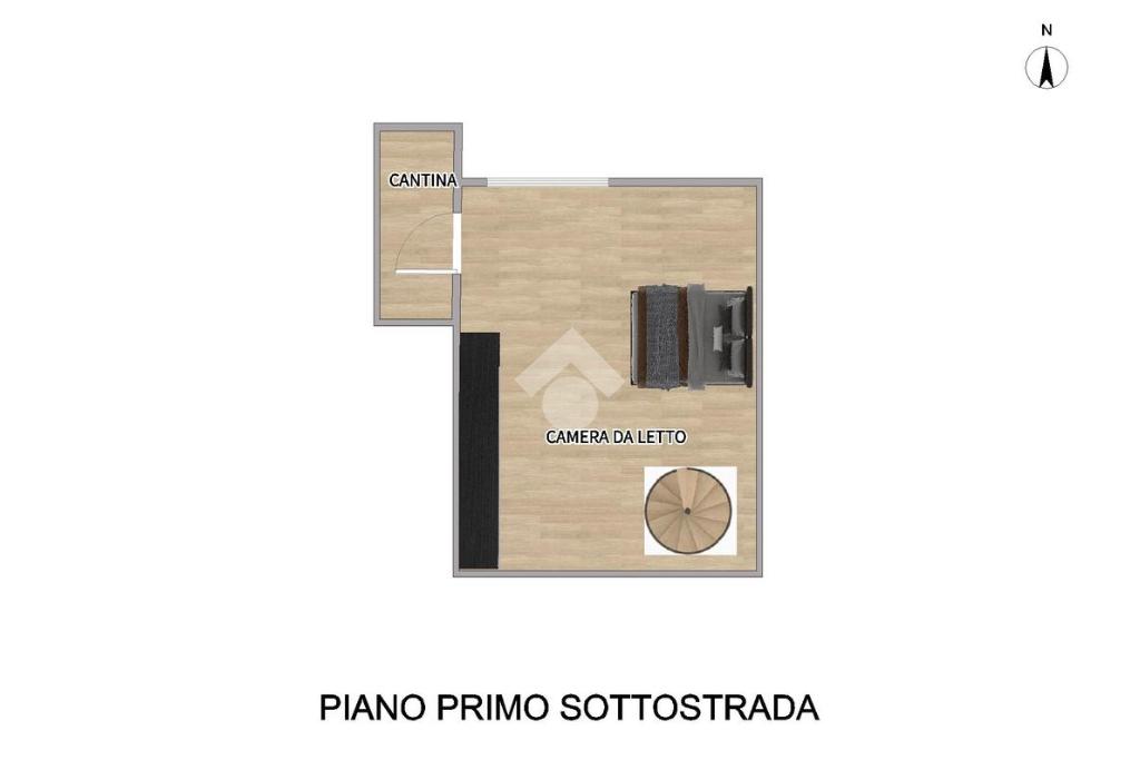 L’appartamento è composto da un monolocale al piano terra con ingresso su soggiorno-pranzo-letto, angolo cucina, bagno e giardino-cortile privato per circa 55 mq; collegato da scala interna ad una taverna a sua volta comunicante con il garage.