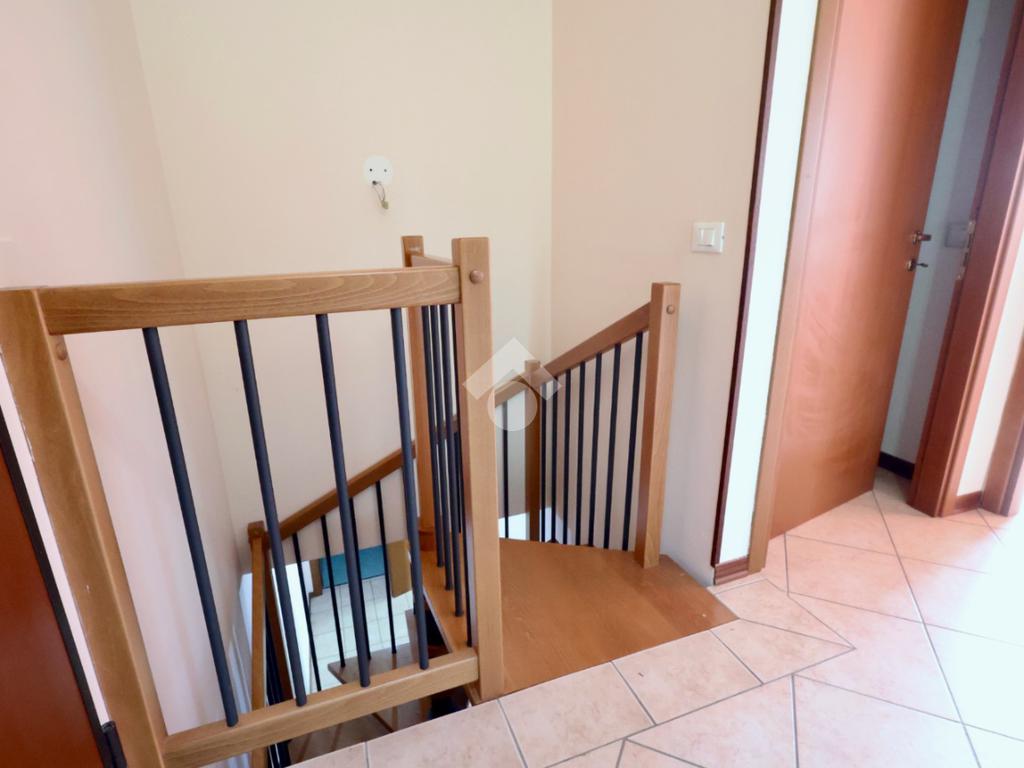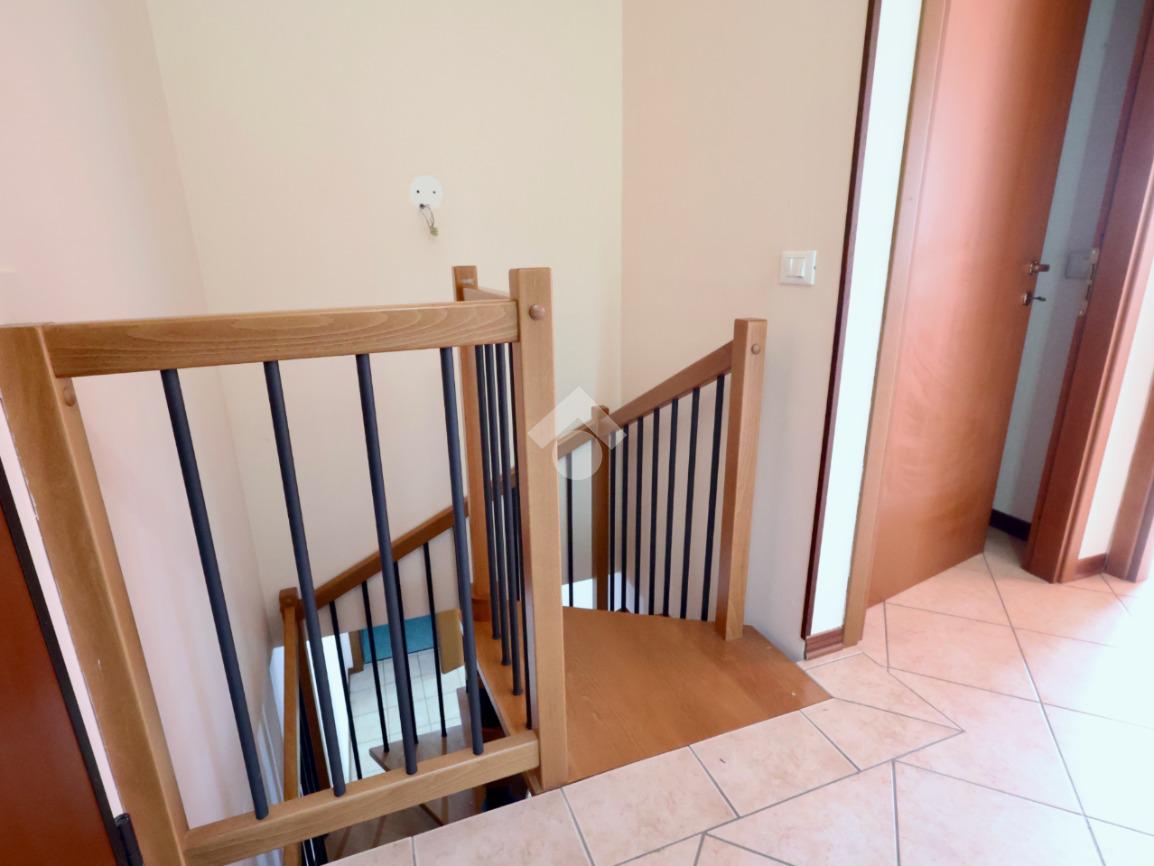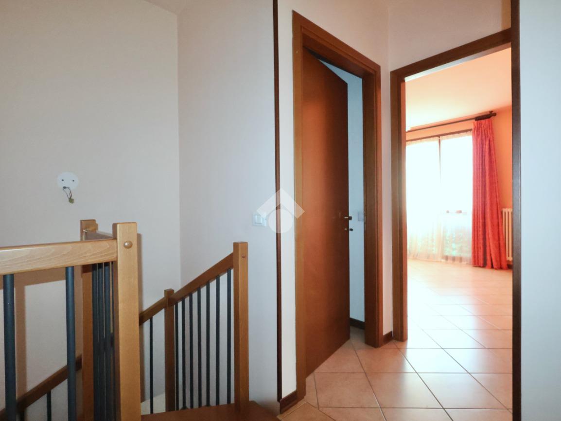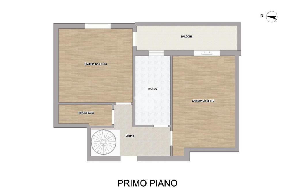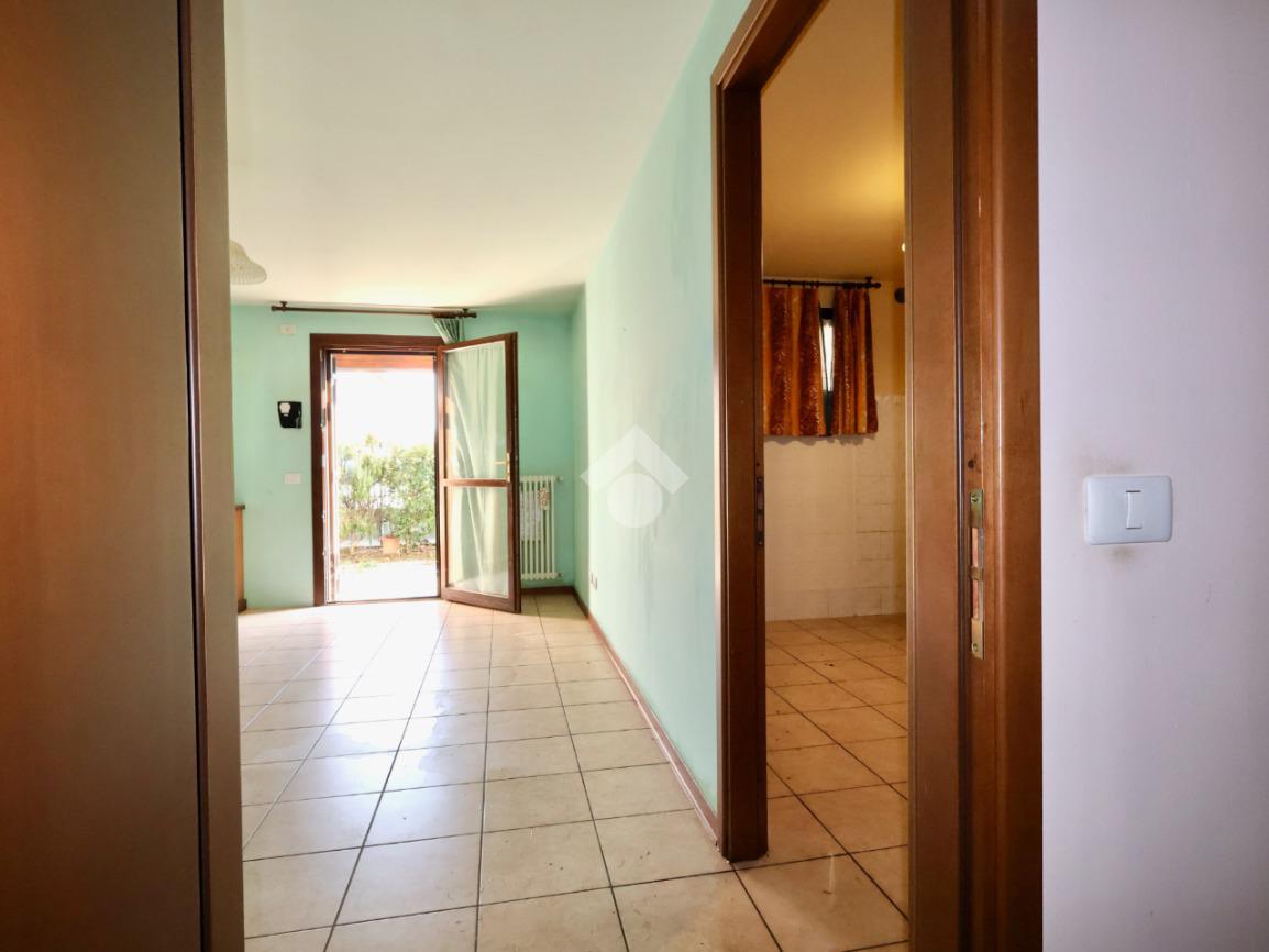 Attualmente la distrubuzione dei vani prevede al piano terra una zona soggiorno, cucina separata e bagno lavanderia; al piano primo - collegato da scala interna - due camere da letto, ampio balcone, bagno e ripostiglio.