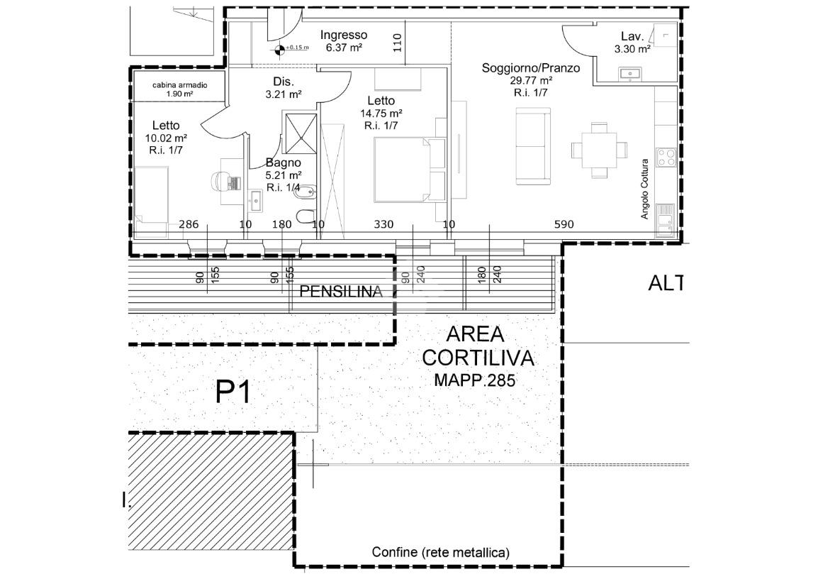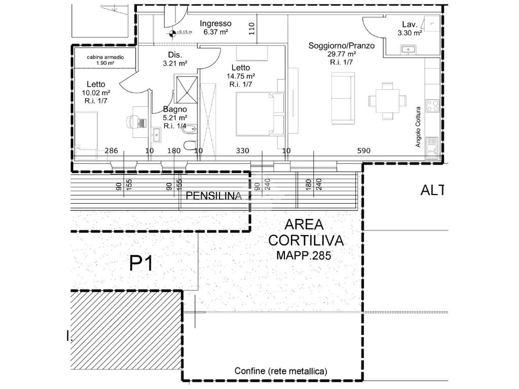La composizione dell'alloggio prevede: ingresso, soggiorno/pranzo con angolo cottura, lavanderia, disimpegno, due camere da letto e bagno con finestra.