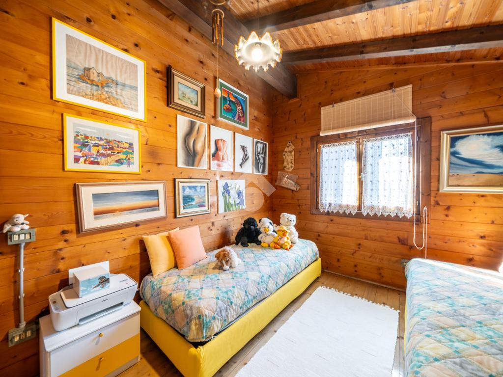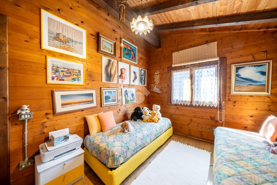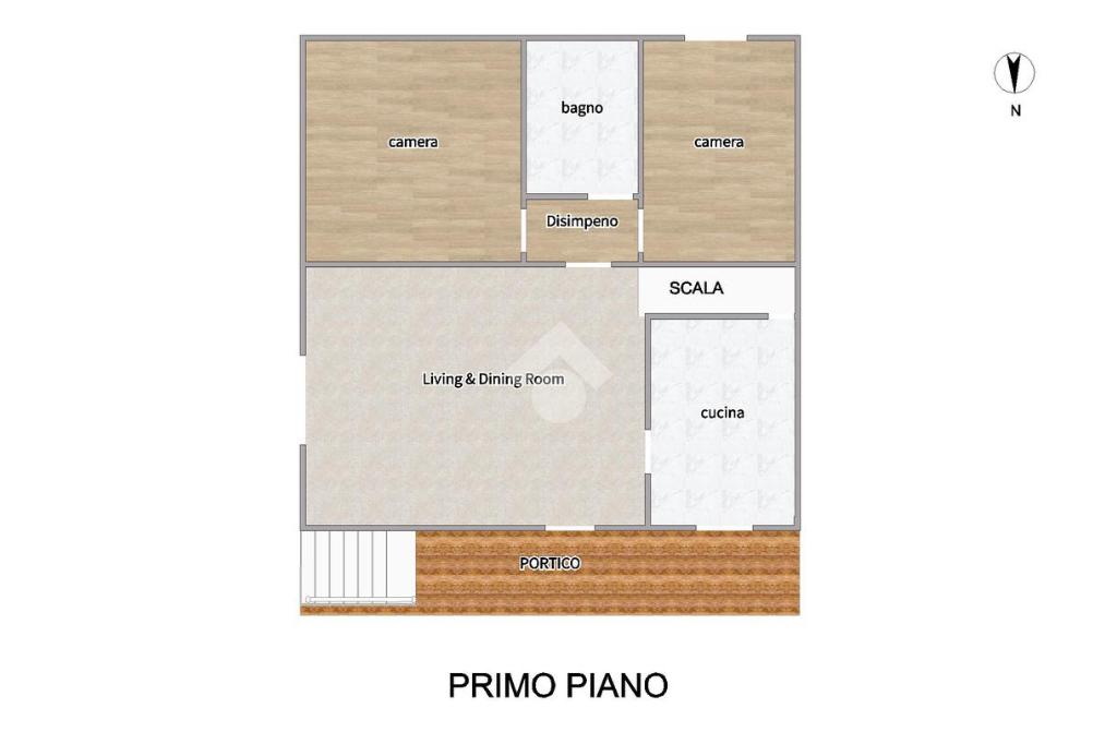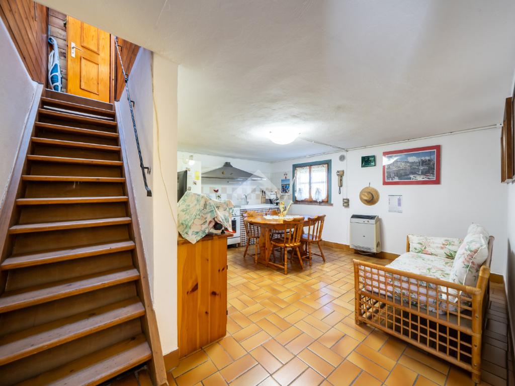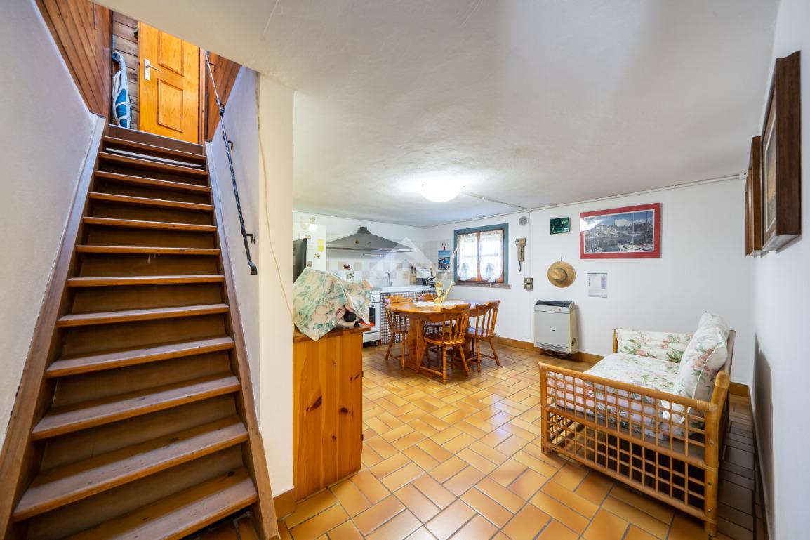 - al piano primo troviamo la balconata coperta che accompagna all'ingresso dell'abitazione direttamente sul soggiorno, cucina abitabile, disimpegno notte, due camere da letto (una matrimoniale ed una singola) e bagno;