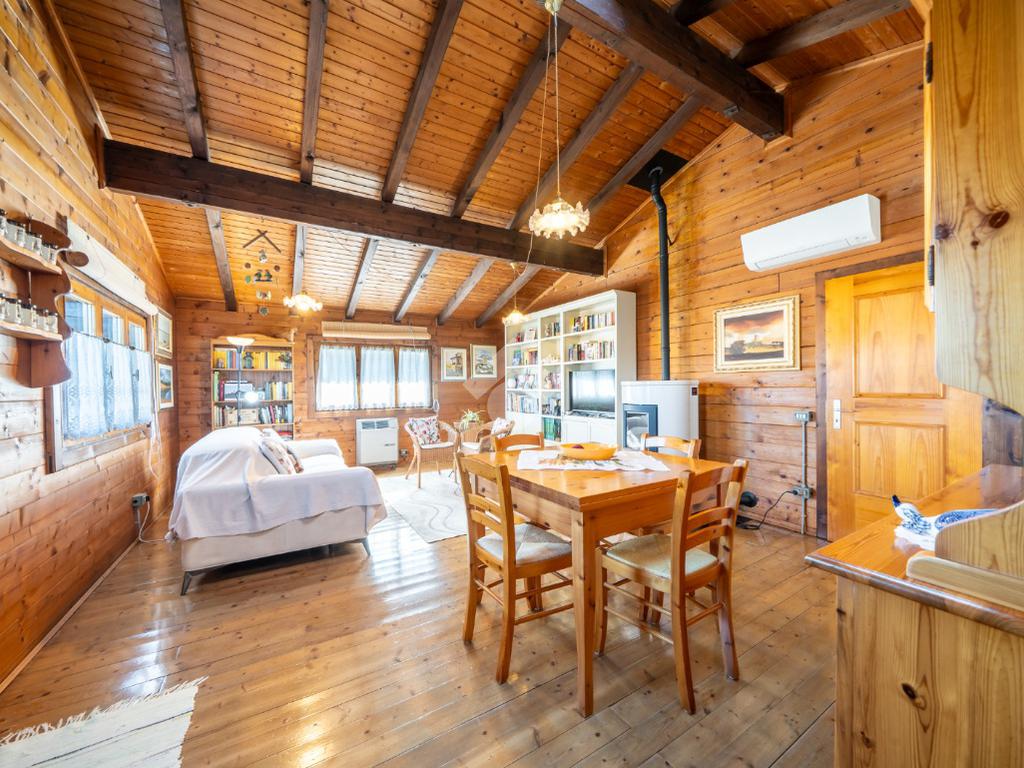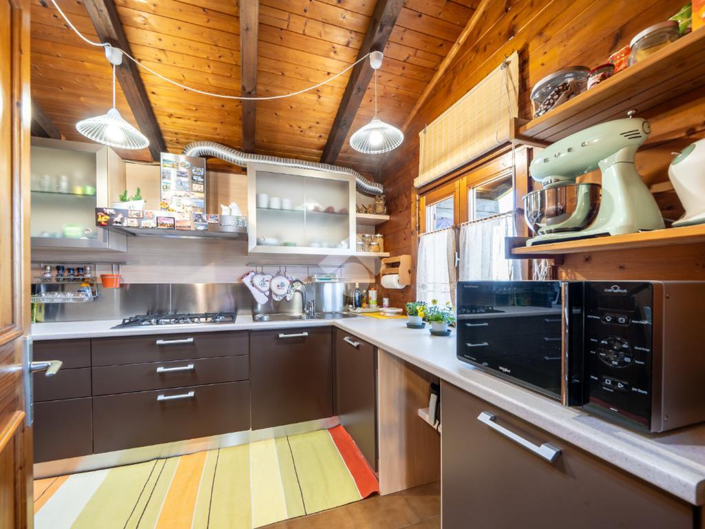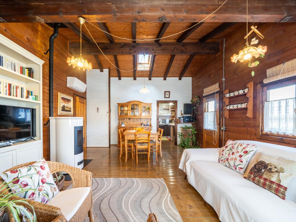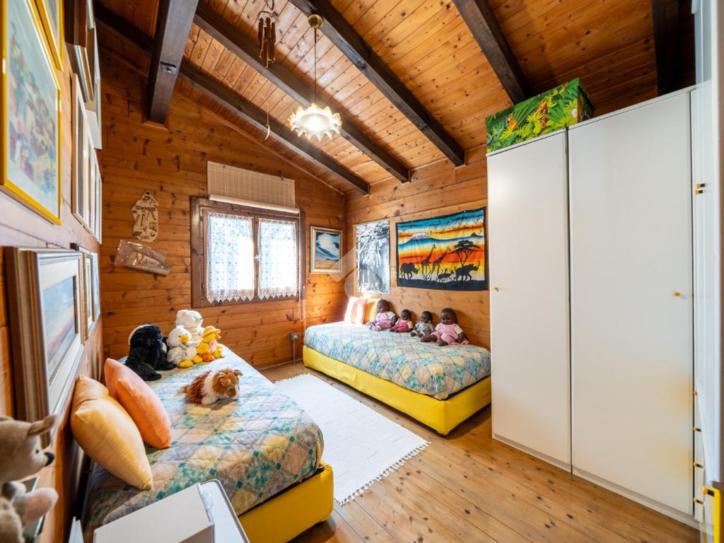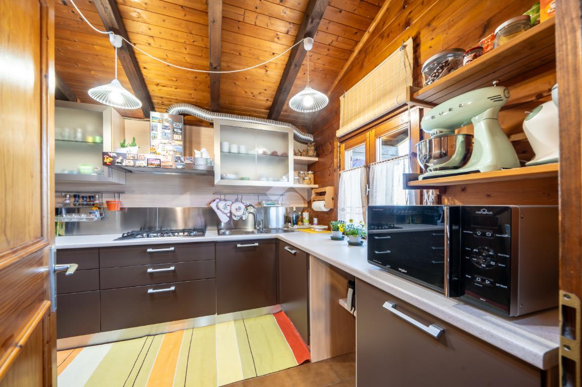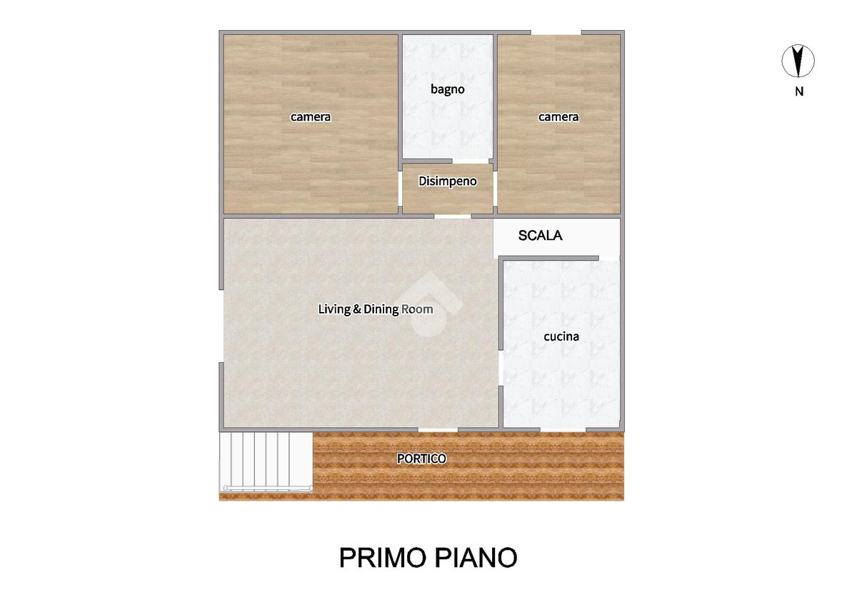 - al piano primo troviamo la balconata coperta che accompagna all'ingresso dell'abitazione direttamente sul soggiorno, cucina abitabile, disimpegno notte, due camere da letto (una matrimoniale ed una singola) e bagno;